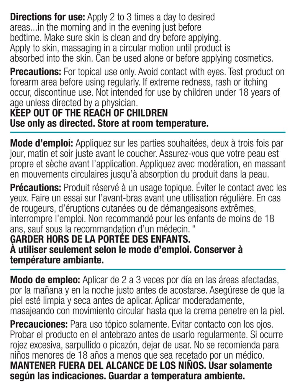 Apply 2 to 3 times a day to desired areas.. in the morning and in the evening just before bedtime. Make sure skin is clean and dry before applying. Apply to skin, massaging in a circular motion until product is absorbed into the skin. Can be used alone or before applying cosmetics.