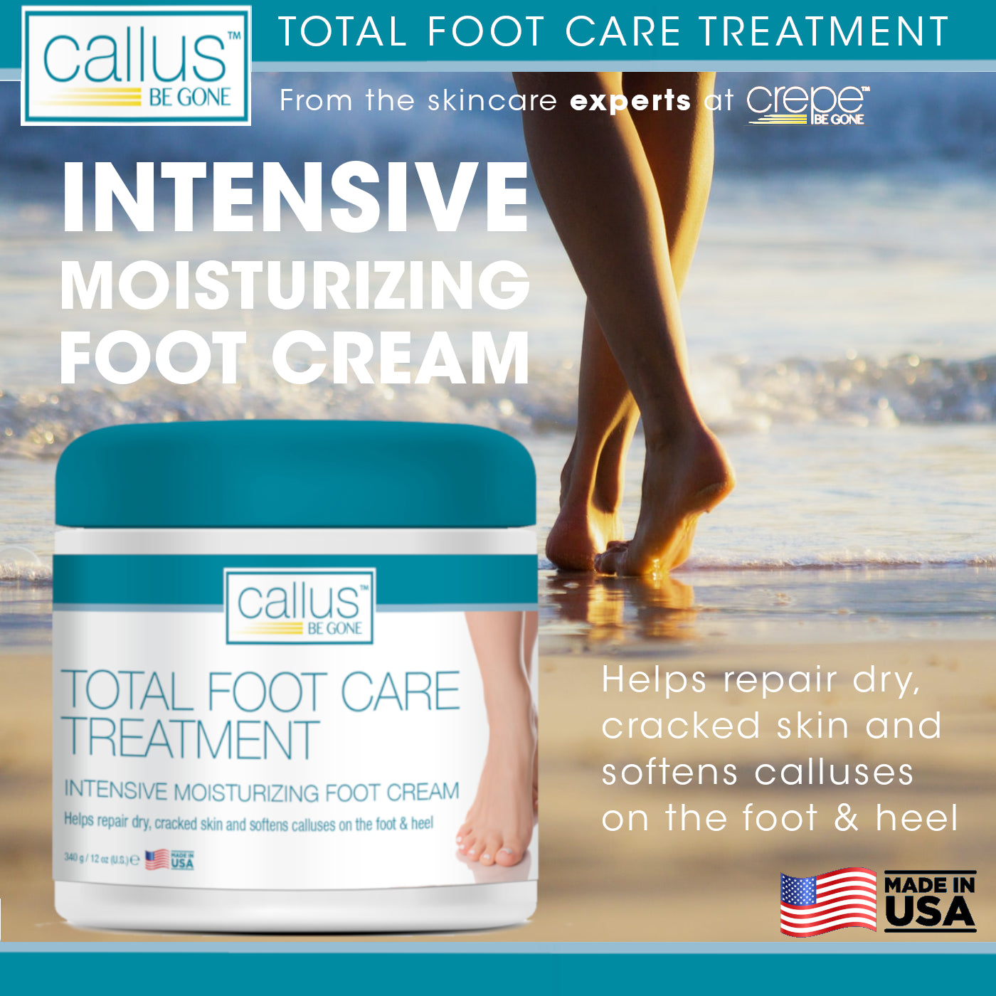 Experience smoother, softer feet with Callus Be Gone Total Foot Care Treatment. This intensive moisturizing foot cream is specially formulated to help repair dry, rough, and cracked skin while softening stubborn calluses on the heels and soles.